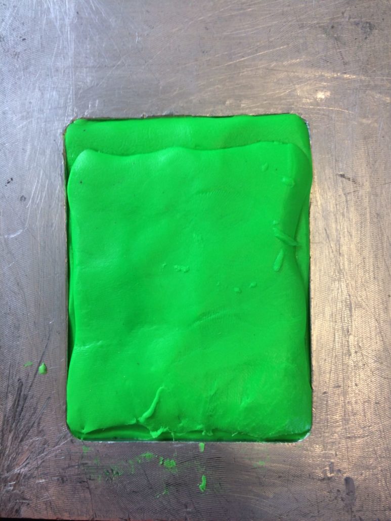 Taglio gomma con all'interno il modello maggiorato per la produzione.
